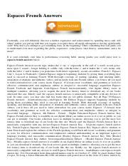Read Online French Espaces Supersite Answers Kindle Editon By Click Button. French Espaces Supersite Answers it’s easy to recommend a new book category such as Novel, journal, comic, magazin, ect. You see it and you just know that the designer is also an author and understands the challenges involved with having a good book. You can easy klick for detailing book and you can read it online, even you can download it